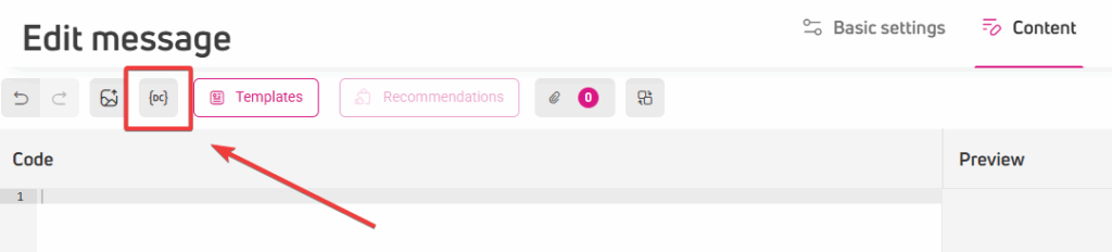 Click the (DC) icon to access the list of dynamic content. You’ll find the methods in the Content section.
