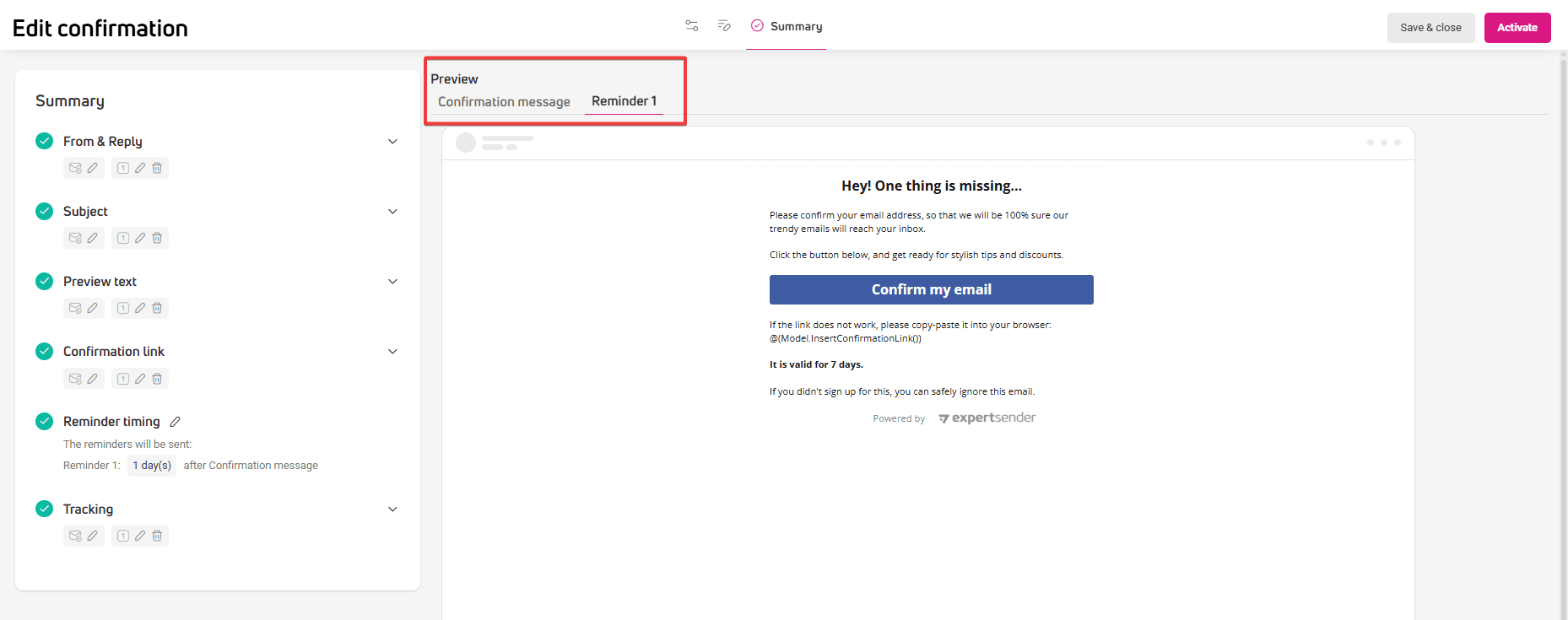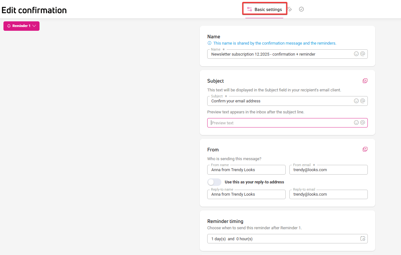 Reminders are follow-up messages sent a few days after someone signs up for your newsletter. They help you: