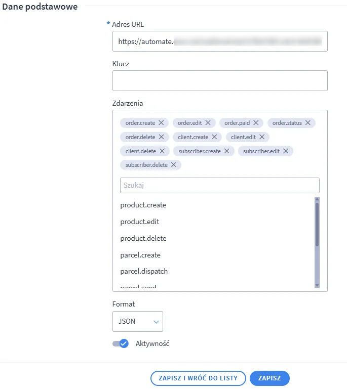 Creating a webhook in Shoper panel