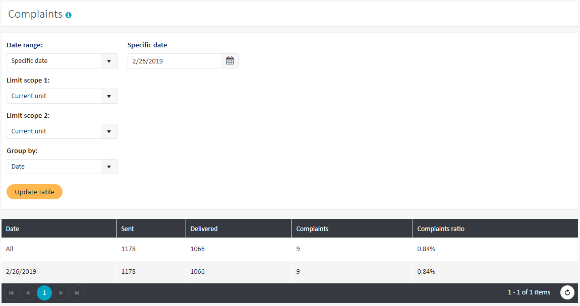 Complaint reports allow you to track the change in the ratio of complaints (clicks on the Spam button) submitted by subscribers in relation to the total number of sent messages. These data come from ISPs which provide Feedback Loop mechanisms.