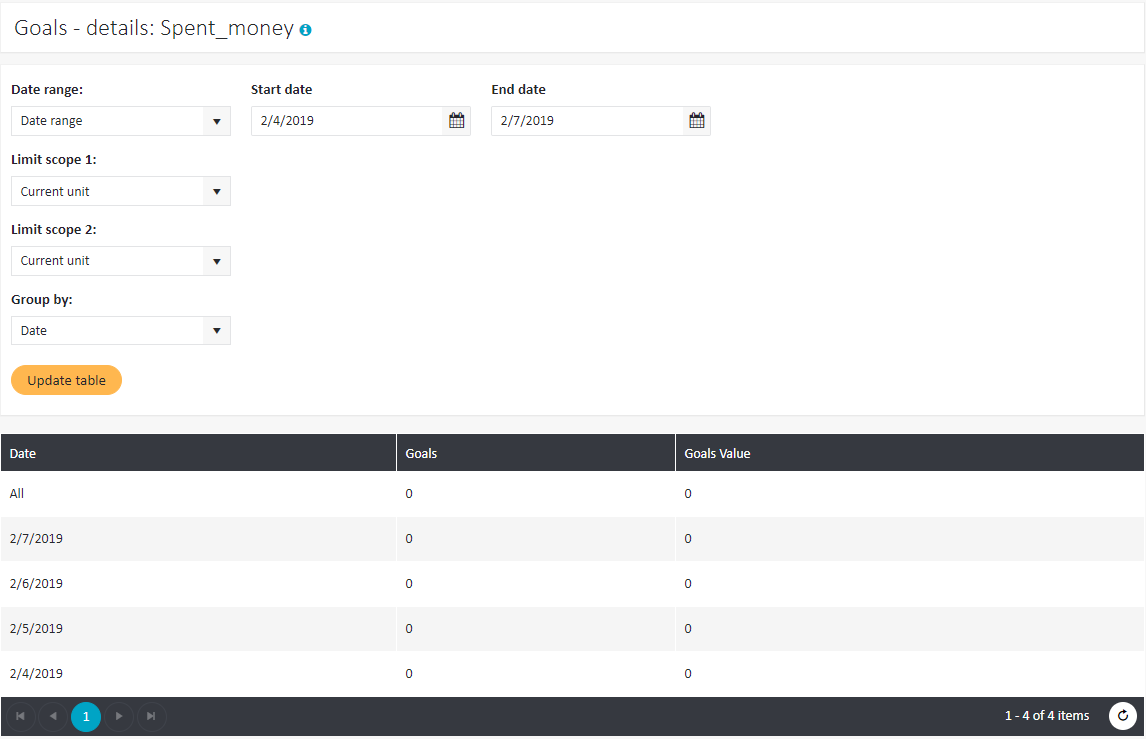 Goal reports allow you to use typical report filters, so you can see, for example, how many goals are achieved in a certain period of time by a certain list of emails, IP address, or domain.