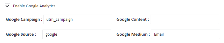 In order to start using the tool, all you need to to do is check Enable Google Analytics under the message editor and complete the fields: