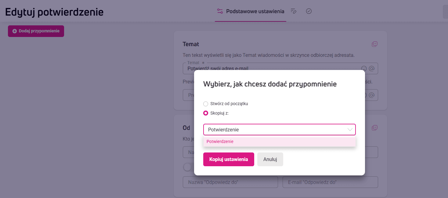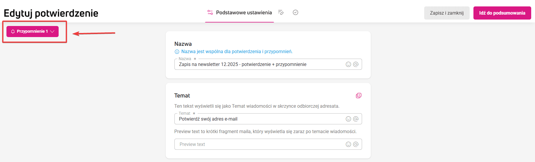 • Możesz dodać maksymalnie 2 przypomnienia dla jednej wiadomości potwierdzającej.