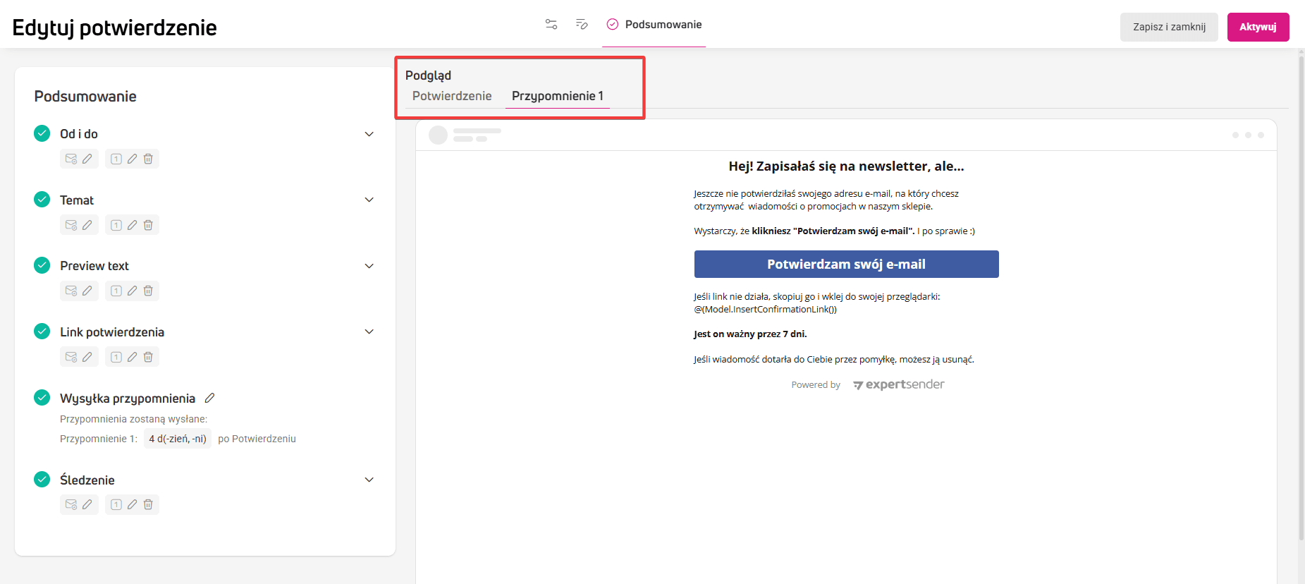 • Gdy odbiorca nie kliknął linku aktywacyjnego w potwierdzeniu.