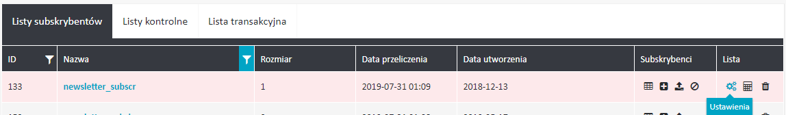 - Z panelu po lewej stronie wybierz Subskrybenci > Listy.