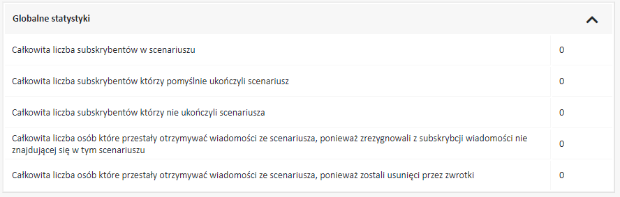 Graficzna reprezentacja Twojego scenariusza poniżej pokazuje jak wielu subskrybentów przeszło przez każdy etap scenariusza, jak wielu jest na nim obecnie oraz ilu z nich otworzyło daną wiadomość scenariusza, klikneło wewnątrz niej oraz zostało skonwertowanych.