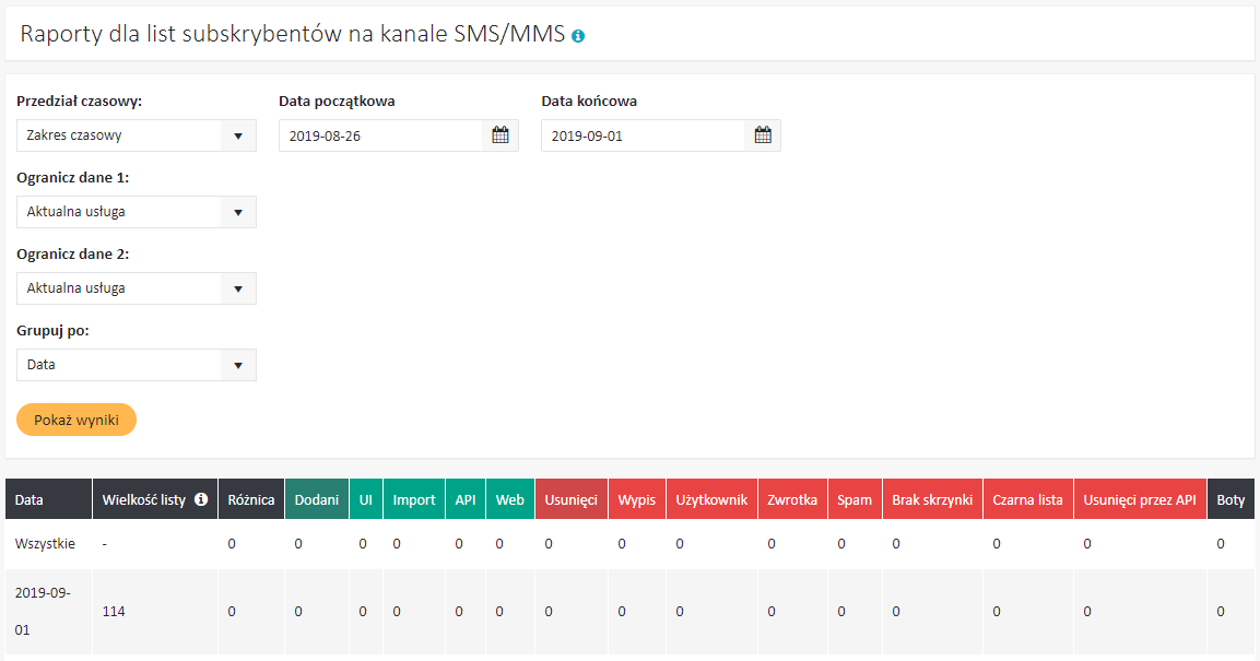 - Dodani – całkowita liczba subskrybentów dodanych do bazy w analizowanym okresie;