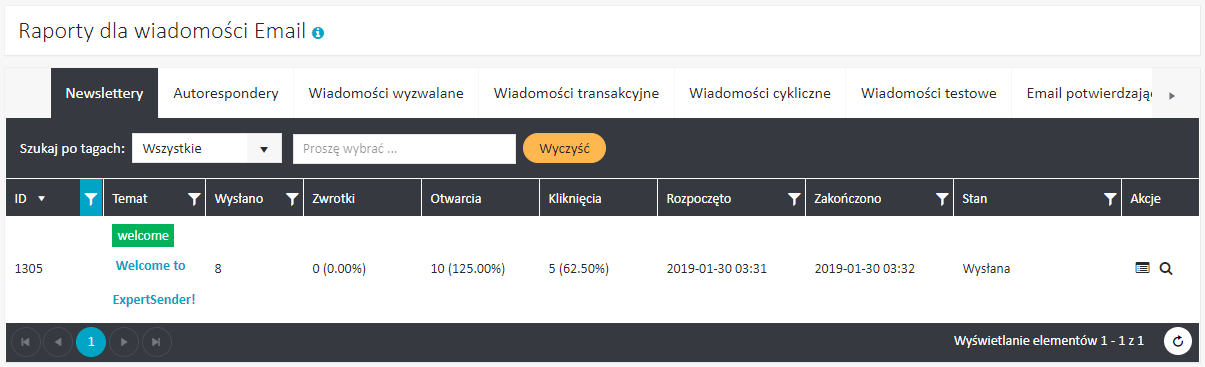 ExpertSender umożliwia Ci uzyskanie dostępu do szczegółowych informacji i statystyk dotyczących każdego pojedynczego e-maila wysłanego z Twojego konta.