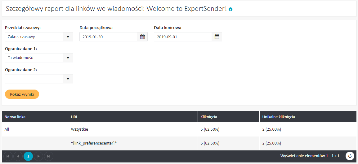 - Klikający – ilość unikatowych subskrybentów, którzy kliknęli na dowolny link w dowolnej wiadomości